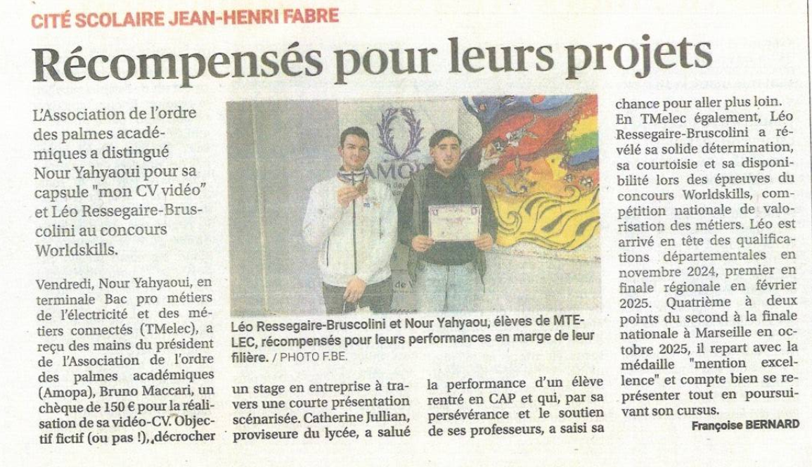 2 élèves de TMELEC distingués